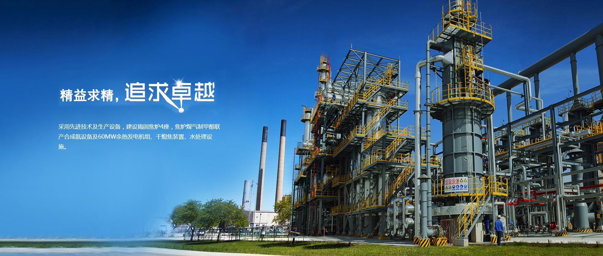 用先進(jìn)技術(shù)及生產(chǎn)設(shè)備,建設(shè)搗固焦?fàn)t4座,焦?fàn)t煤氣制甲醇聯(lián)產(chǎn)合成氨設(shè)備及60MW余熱發(fā)電機(jī)組、干熄焦裝置、水處理設(shè)施。